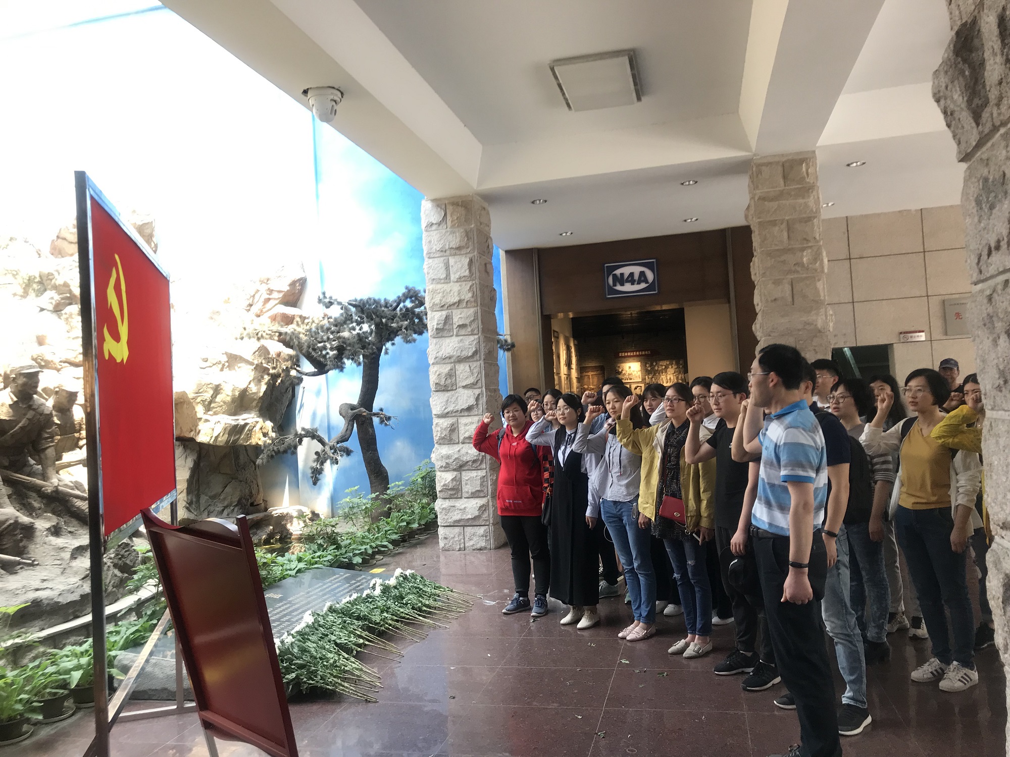 上午8点半,党支部统一组织党员驱车前往镇江市句容县茅山新四军纪念馆。进入茅山新四军纪念馆后,首先看到的是以陈毅将军为首的革命英雄的全身铜像,铜像生动地再现了老一辈无产阶级革命家的光辉形象。在组织者的带领下,同志们在铜像前依次献上代表我们缅怀之情的菊花,然后在党旗下郑重宣誓,合影留念。