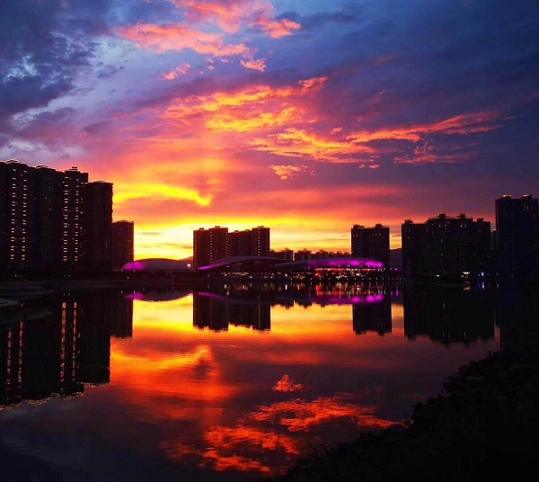 夏日的天,热、闷热是这一季节的常态,即使一度炙热、酷热也不足为怪。清晨,太阳刚一出头,温度就不停地向上飚升,没有一丝一毫的风,空气好像都被凝固住了。午间,太阳更是热气腾腾,烤得马路滚烫滚烫的,好像一点火就能着的样子。夕阳西下时,太阳才慢慢收回自己的霸气,一片金色的光芒,把天空染得红彤彤的。夜幕降临,月光如清澈的流水静静地洒向大地,密密麻麻的星星,像一颗颗宝石镶嵌在天空,璀璨夺目,耀眼明亮。