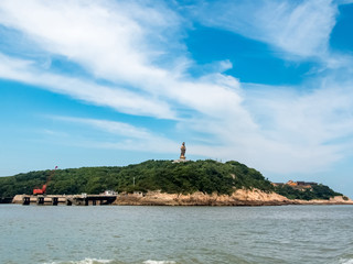 普陀山最具盛名的普济寺、法雨寺、慧济寺,都是绿荫密匝、绿墙红瓦的院落。走入其中,可闻经声佛号盈耳,可见香火之气处处缭绕,一片仙气十足的景象。南海观音像,伫立在海岛的最前沿,背靠普陀,面向大海。观音像用亚金铜铸造,总高33米,可谓是世界观音之最。