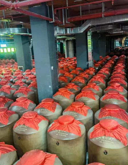 紧接着我们又来到了陶坛库和地下酒窖。陶坛储酒库内存陶坛3万只,单只陶坛储酒约1吨。是目前世界上最大的陶坛储酒库区,被誉为“天下第一坛”。