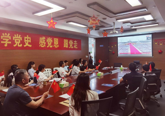 上午8点,活动准时开始。随着56枚礼炮鸣放100响,222名仪仗队员护送国旗从人民英雄纪念碑至升旗台,看着五星红旗冉冉升起,同事们的心一下热了起来。在聆听了各民主党派、工商联和各无党派人士联合致党贺词,观看了共青团员和少先队代表集体献词之后,同事们认真听取了习近平总书记的重要讲话。讲话约65分钟,深情回望中国共产党团结带领中国人民开辟的伟大道路、创造的伟大事业、取得的伟大成就,深刻揭示中国共产党的精神之源和政治品格,坚定表明前进征程上不断创造性的历史伟业的决心和信心。大家神情专注、激动的心情溢于言表,大会最后忍不住和现场同胞们一起挥动起手中的党旗。