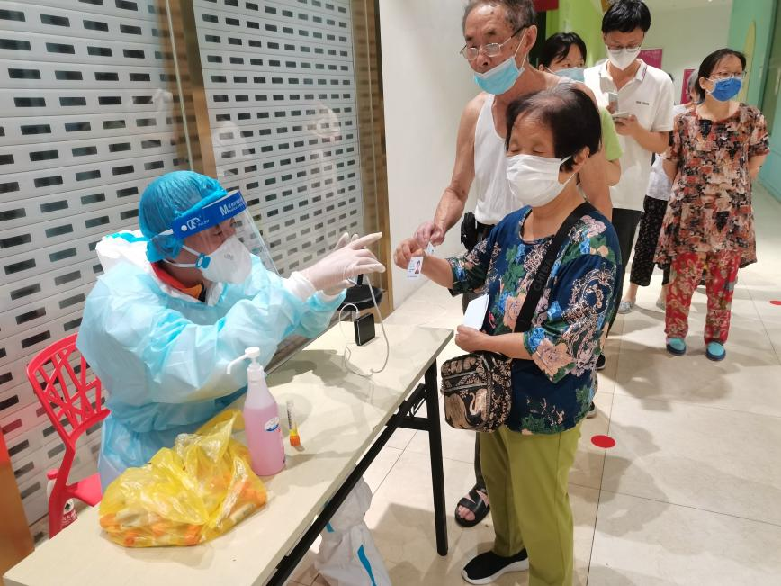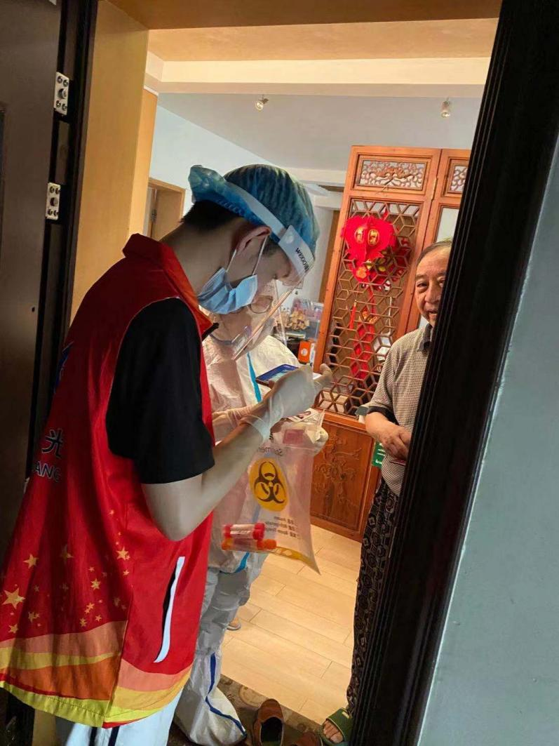 叶福盛,中共党员。7月11日因公去了趟禄口机场,23号苏康码转黄码,他依照社区和公司要求自觉居家隔离。居家的近半个月中,他一直关注着外界动态。8月2日隔离结束变绿码,他立即报名参加志愿者,仅用了短短一周的时间,体验了志愿者的不同岗位:发放号牌、上门采样、信息录入、秩序维护。有一次他与医护人员上门采样,一个上午陆续爬了十多次的层楼,每爬一次都汗流浃背。