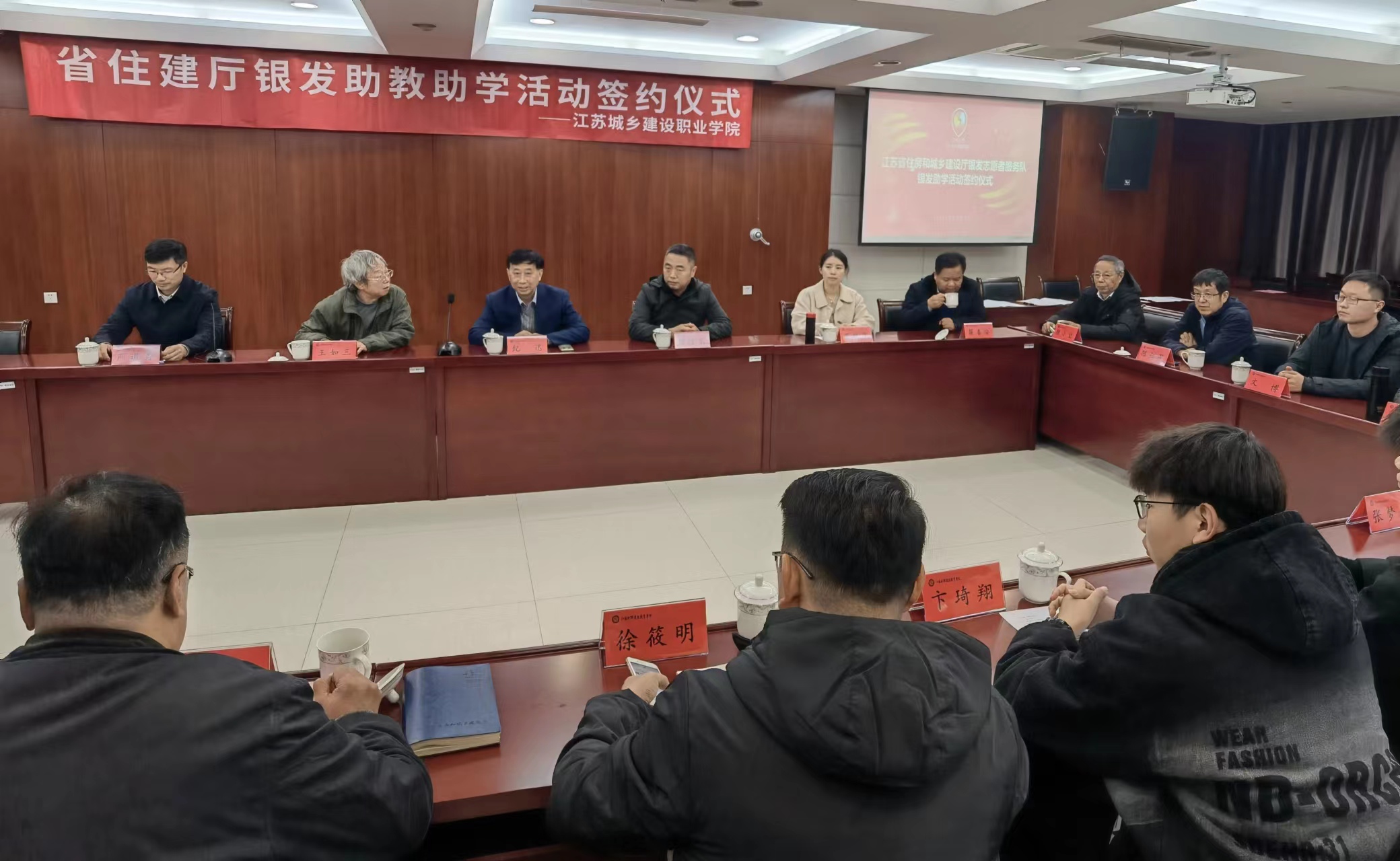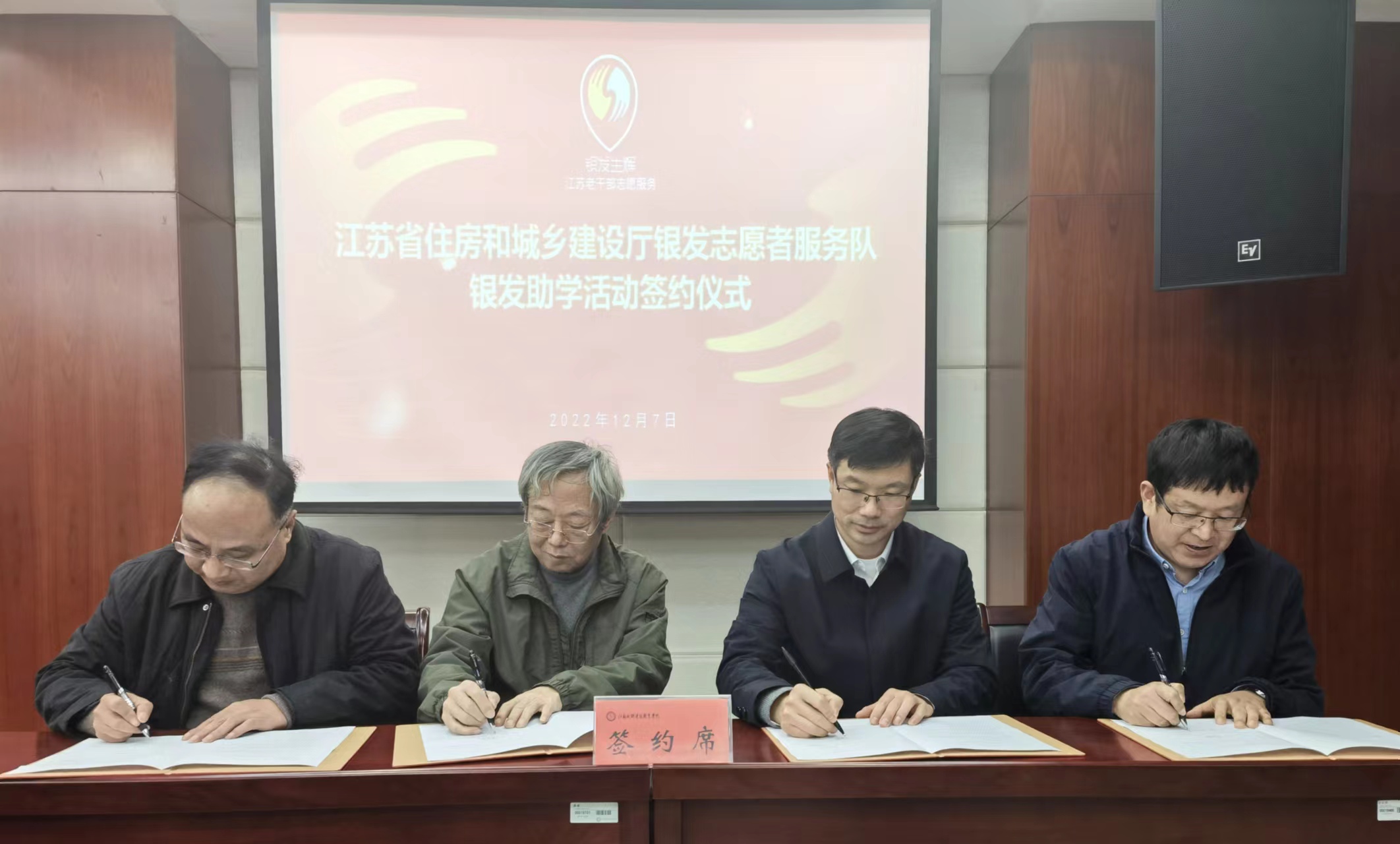 随后,公司副总经理陈红星与省住建厅离退休干部第三党支部书记王如三、省住建厅离退休干部处处长严道存及江苏城乡建设职业学院副校长毛浩生举行签约仪式。
