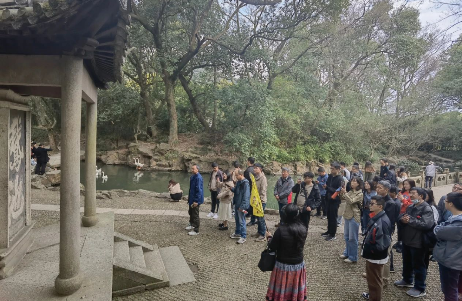 第二天,团建全员来到了绍兴市柯桥区的兰亭风景区,书圣王羲之的绝世佳作《兰亭集序》正是出自此处。这里崇山峻岭,茂林修竹,幽静雅致。曲水流觞是古代文人墨客诗酒唱酬的一种雅事,如今,我们虽然没有古代诗人五步成诗,七步成词的佳境,但内涵提升始终是每个人的自我修炼。这里“太字碑”的故事就警示着大家:学海无涯,技无止境,要不断进步,超越自己、超越对手。无论你曾经有多辉煌,总有人比你优秀,要永远谦虚,坚持学习。