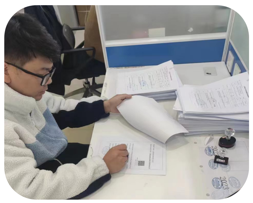 由于苏州地区开票体量大、时间紧,在疫情爆发期间,苏州业务部党员杨鹏和范宸皓利用周末休息时间驱车回公司开票,一天处理了300余张发票,大大减轻了财务开票压力。两位小伙子从早上9点开始,一直忙到晚上8点,一刻顾不上休息,连夜赶回苏州,就为了能把发票及时送到业主手上。