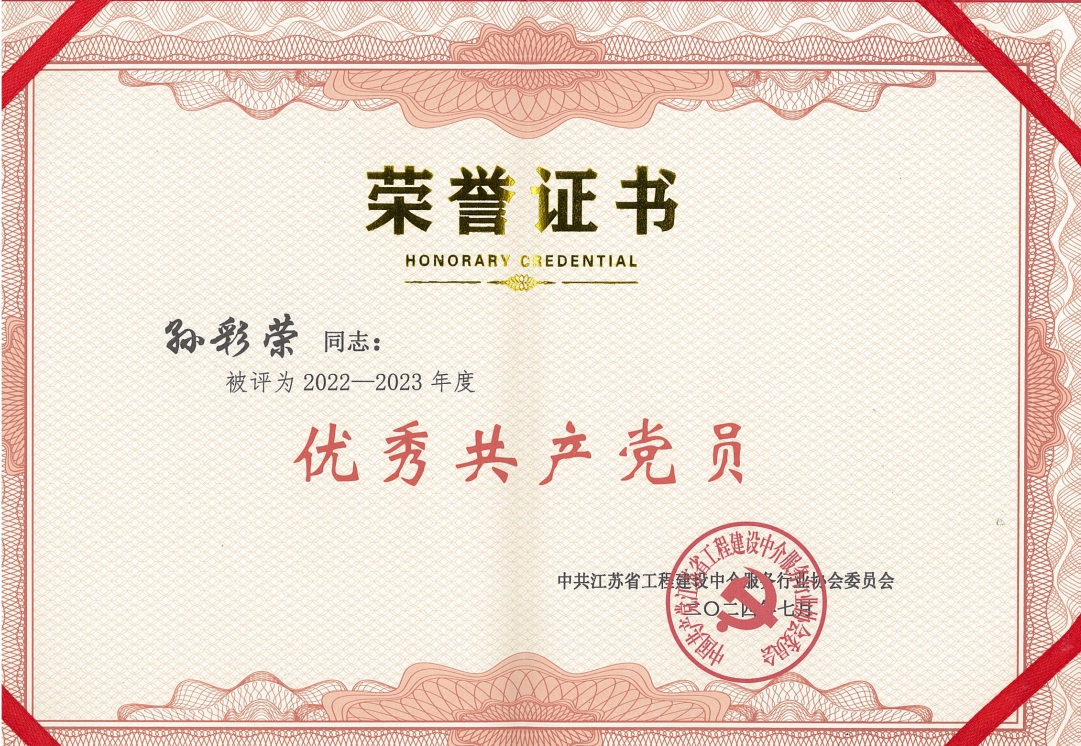 随后,党委委员王核宣读了《江苏省工程建设中介服务行业协会党委关于表彰优秀共产党员、优秀党务工作者和先进党支部的决定》。在决定中,公司党支部被评为“2022-2023年度先进党支部”,支部组织委员孙彩荣被评为“2022-2023年度优秀共产党员”。这是上级党委对我支部工作的认可和勉励,促使党支部向着更高的要求迈进。